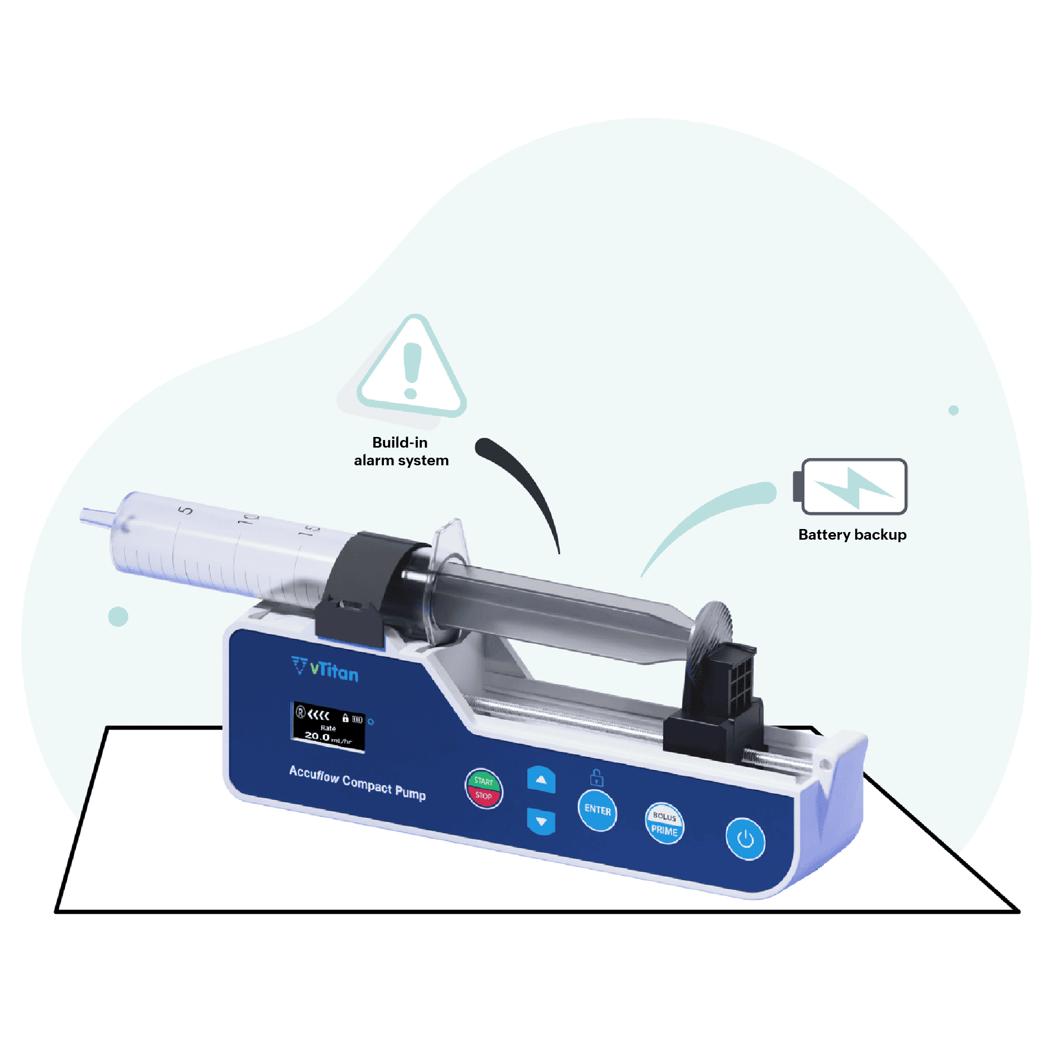 Accuflow Compact Syringe Pump is designed to overcome the limitations in traditional syringe pumps for use in home care settings, offering an advanced solution for accurate and consistent medication delivery in both ambulatory and home care settings.
